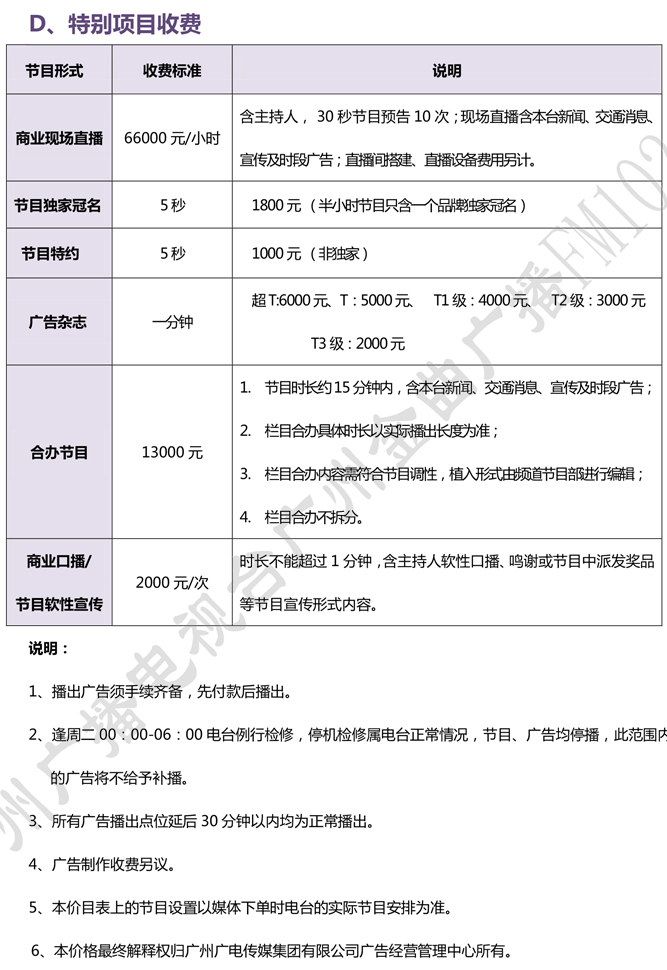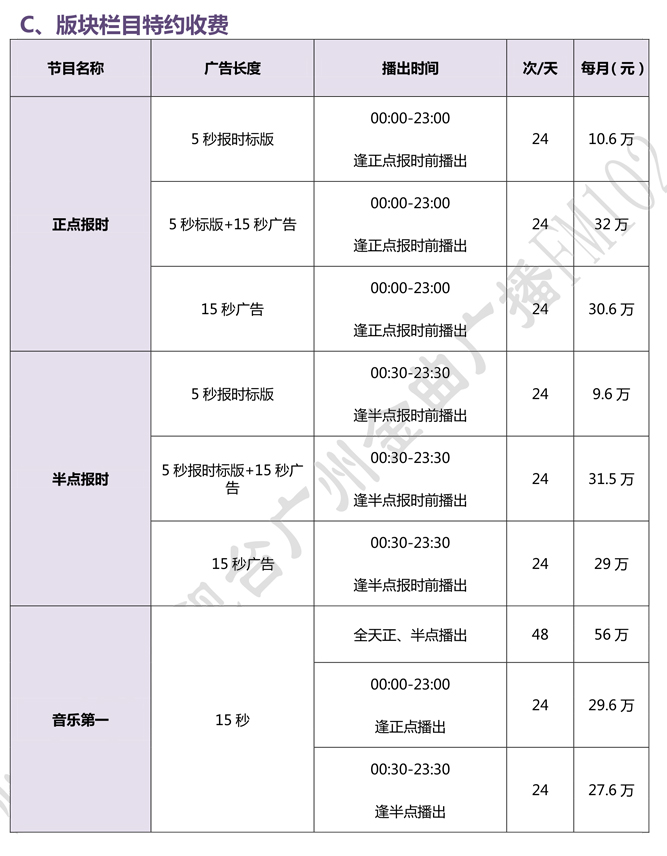 廣州金曲音樂廣播FM102.7 2021年廣告刊例價(jià)格