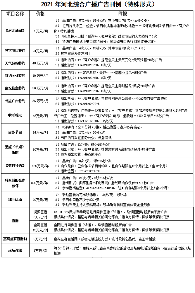 河北廣播電視臺(tái)綜合廣播,以公務(wù)、商務(wù)人士為核心聽眾群,頻率資源最多、發(fā)射功率最大、覆蓋范圍最廣。