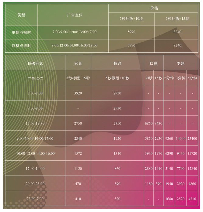 天津交通臺(tái)在車上收聽率高達(dá)96.4%(這在有抽調(diào)數(shù)據(jù)顯示的全國(guó)交通臺(tái)中最高)。在2003年天津人民廣播電臺(tái)千戶居民收聽率調(diào)查中,天津交通臺(tái)車外綜合收聽率也位居天津電臺(tái)七個(gè)系列臺(tái)之首,每天200萬(wàn)以上流動(dòng)受眾,鎖住商務(wù)白領(lǐng)消費(fèi)一族,商機(jī)無(wú)限。