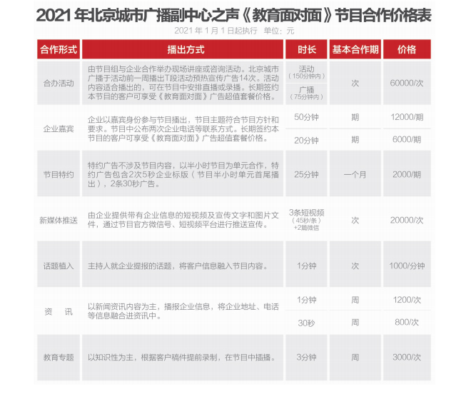 北京城市廣播FM107.3微信公眾號廣告刊例價
