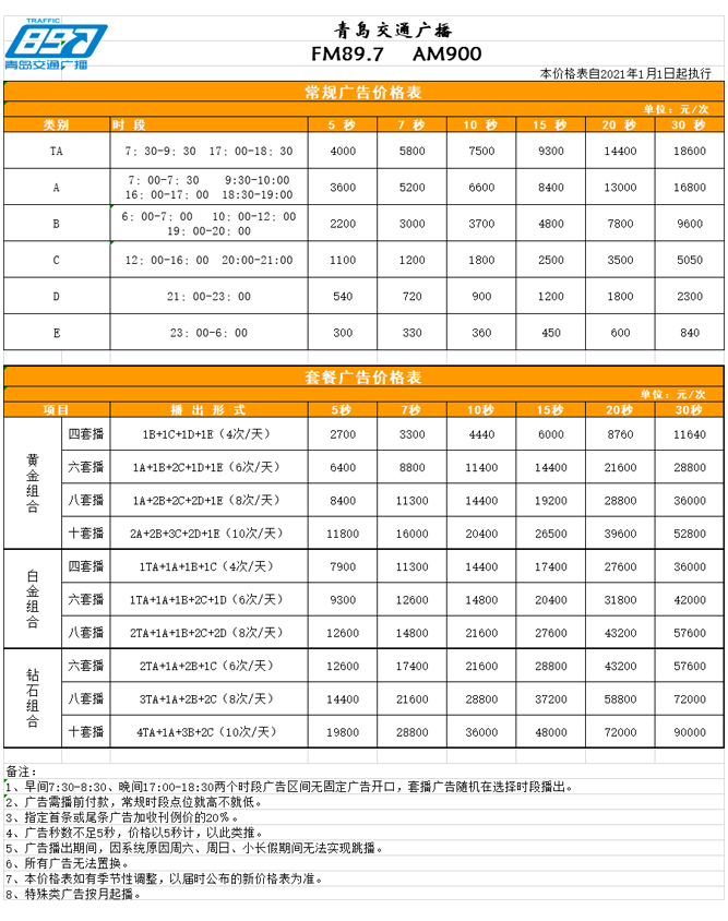青島人民廣播電臺(tái)交通頻道,于1999年12月28日開始試播,2000年2月28日正式開播。播出頻率為調(diào)頻89.7兆赫,調(diào)幅900千赫,是青島第一家24小時(shí)不間斷播出的電臺(tái),辦臺(tái)宗旨是“關(guān)注交通,關(guān)愛(ài)生活”。