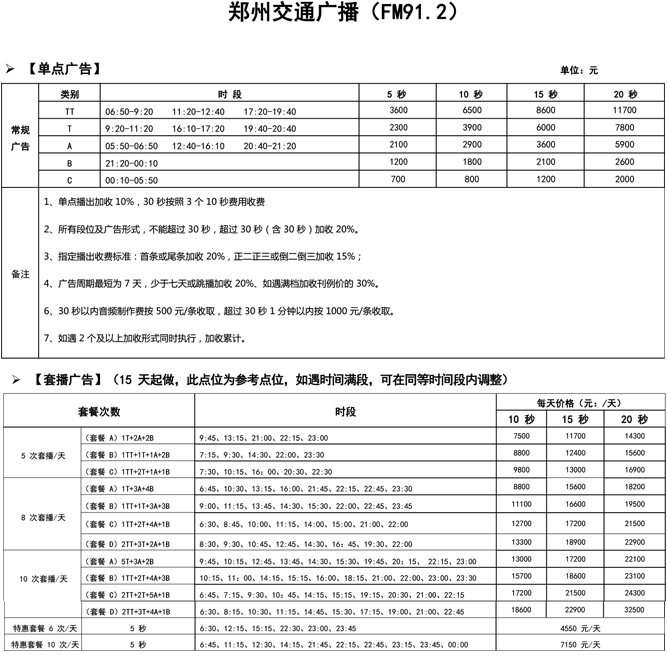 FM91.2鄭州都市廣播汽車調(diào)頻全天每整點(diǎn)、半點(diǎn)即時播報鄭州市區(qū)交通信息、交通路況;發(fā)布賣車、買車,國內(nèi)、國外汽車交易信息;鎖定私家車、出租車、汽車經(jīng)銷商、買車人群,車上收聽人群占有率在河南省20多家電臺中位居第二位,位居河南省23家電臺第五位。貼近都市交通,密切關(guān)注都市民生,反映都市時尚,以交通信息為框架,將權(quán)威的路況、汽車資訊及時傳達(dá)給聽眾,同時輔以生活資訊和流行音樂,最大程度滿足移動人群的收聽需求。我們的口號是:都市廣播汽車調(diào)頻為出行人民服務(wù)!