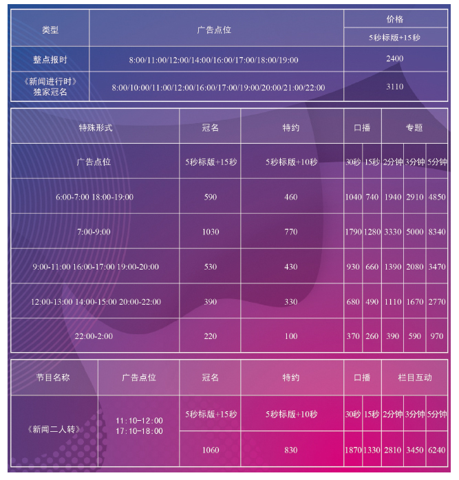 目前,天津新聞廣播在早中晚不同的時段內(nèi),分別形成內(nèi)容關(guān)聯(lián)、特色鮮明、聽眾相對集中的節(jié)目群。早上節(jié)目以黨政干部、知識分子、企業(yè)管理人員等社會中堅為主要對象,以時政新聞為特色,以權(quán)威解讀和評論為重點內(nèi)容;下午節(jié)目除了一些深度報道專題,以普通市民為對象,以服務(wù)“民生”為特色;傍晚節(jié)目以增強新聞有效信息量為重點,以移動收聽群為對象;晚間節(jié)目以法制、文化、體育內(nèi)容為特色,吸引更廣泛的聽眾群。