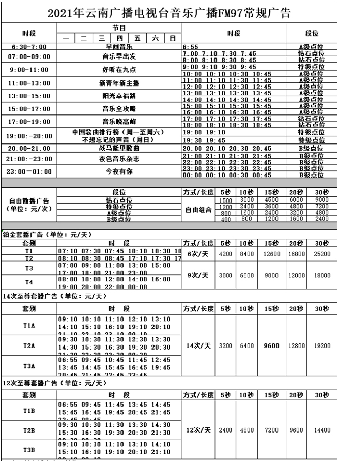 2010年它從伴隨性、欣賞性出發(fā),以車上人群為收聽主體,定位為華語.狀態(tài)音樂頻道,以貼近收聽人群的生活狀態(tài)、人生狀態(tài)、速度狀態(tài)為準(zhǔn)繩,營造適宜的音樂氛圍,使之與目標(biāo)聽眾的生活、人生、速度共鳴,達到為目標(biāo)人群的生活、情感、出行提供音樂伴隨服務(wù)的目的,是聽眾解除煩躁、安定情緒、感受人生、追憶理想、舒暢心情、享受生活的好平臺,云南音樂廣播不論在節(jié)目內(nèi)容、活動創(chuàng)意、媒體影響力都屢獲肯定,除屢創(chuàng)昆明地區(qū)收聽率新高外,還持續(xù)代領(lǐng)流行音樂新風(fēng)潮。