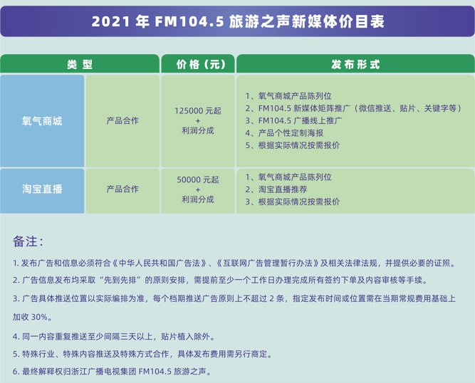 浙江電臺旅游之聲FM104.5微信公眾號廣告刊例價