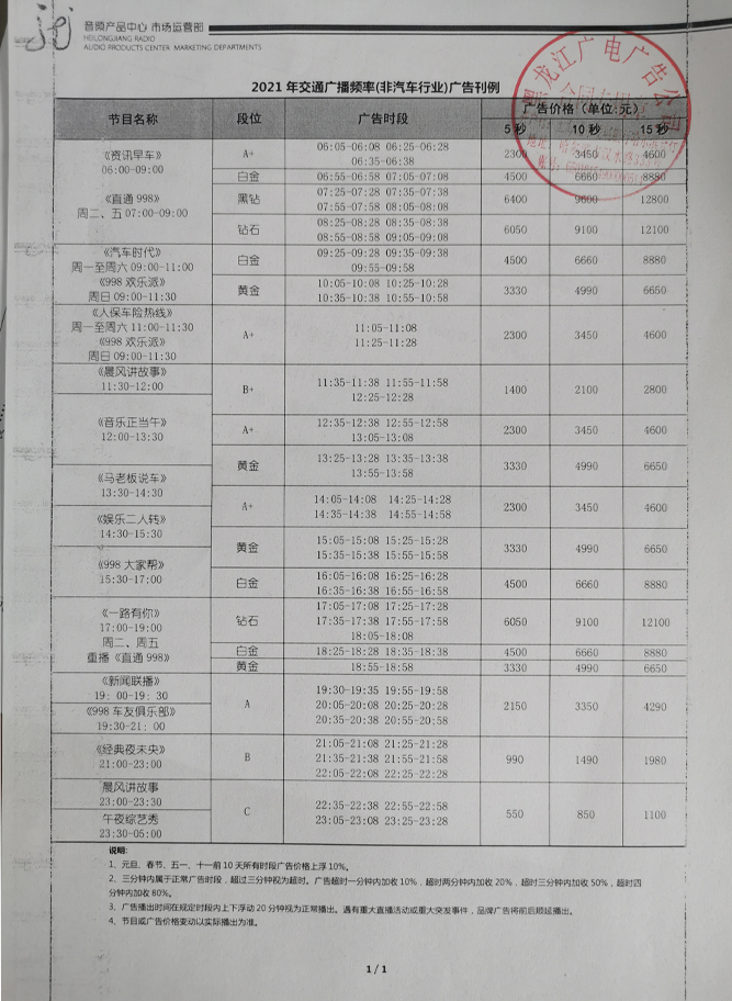 交通臺(tái)在認(rèn)真搞好宣傳、辦好節(jié)目的同時(shí),還積極開辟?gòu)V告創(chuàng)收渠道,在我省廣播媒體中廣告收入位居第一,為廣播事業(yè)發(fā)展做出了積極貢獻(xiàn),實(shí)現(xiàn)了精神文明和物質(zhì)文明雙豐收。