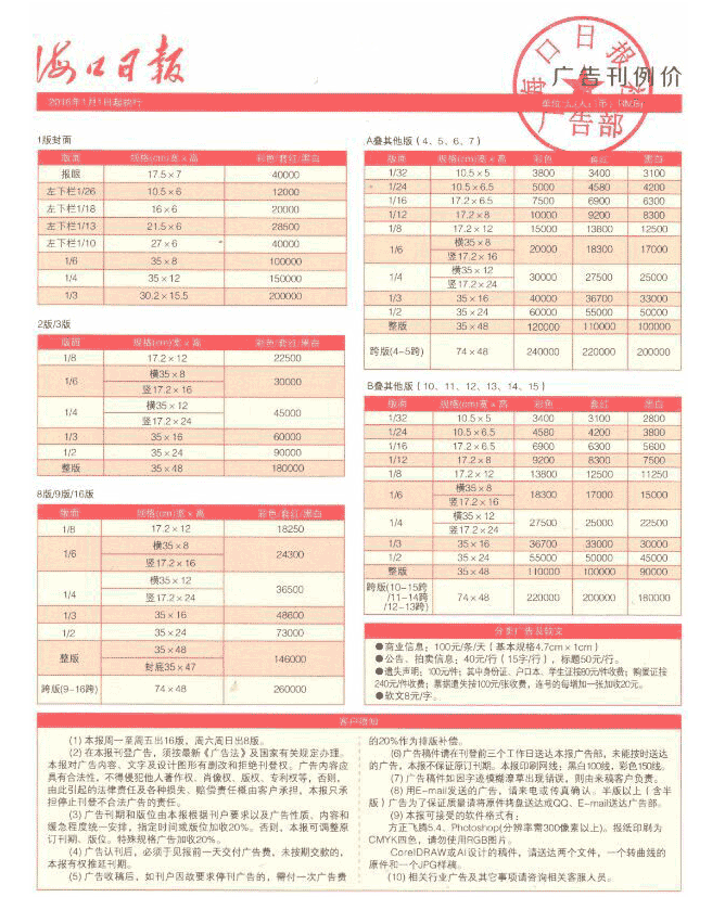 ??谕韴?017年廣告刊例價格