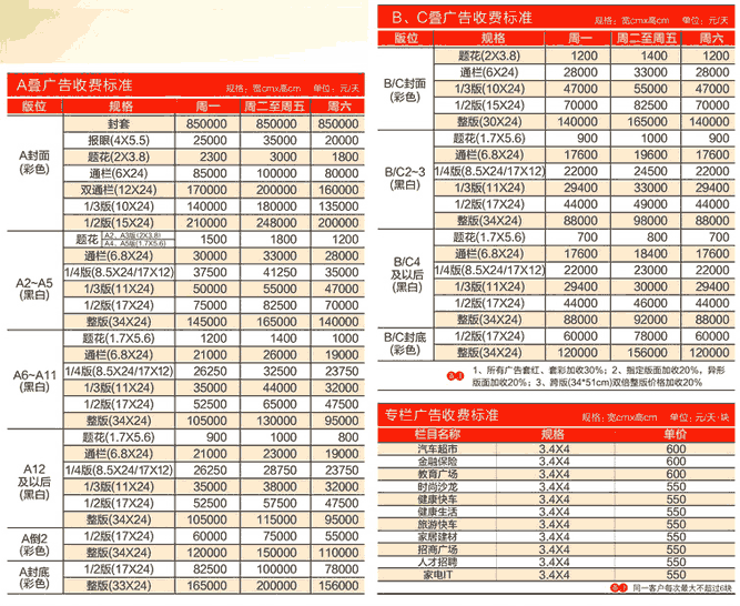 河南商報2017年廣告刊例價格