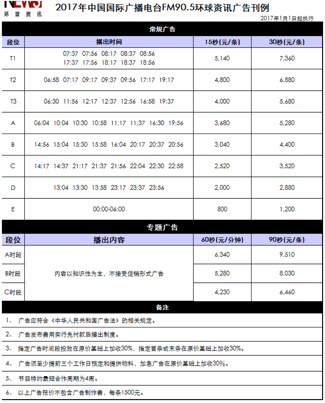 中央廣播電視總臺環(huán)球資訊廣播(CMG NewsRadio,北京調(diào)頻FM90.5 AM900)在全球設(shè)立了32家記者站,使用53種語言播送,全天24小時播音,于2005年9月28日開播。
