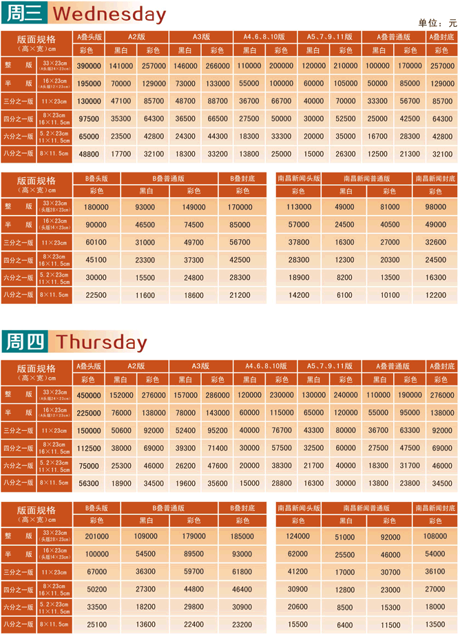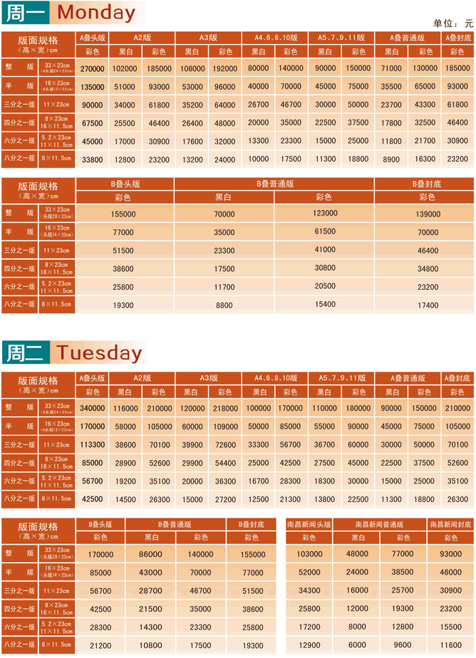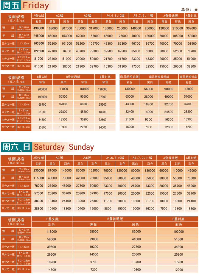 江南都市報2017年廣告刊例價格