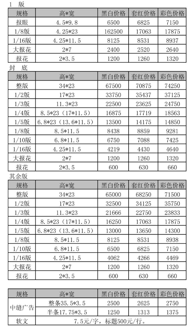 老年日?qǐng)?bào)廣告刊例價(jià)格