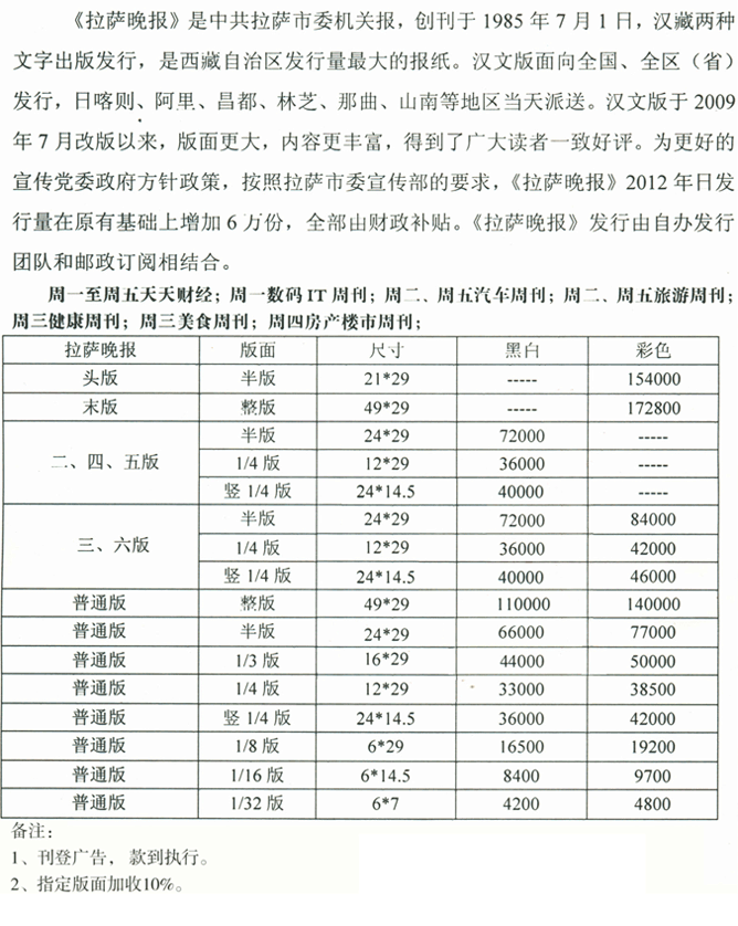媒體名稱: 拉薩晚報 發(fā)行數(shù)量: 36萬
