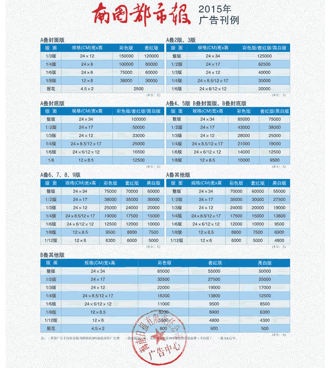 南國都市報2017年廣告刊例價格