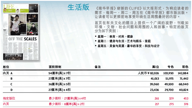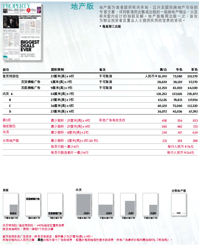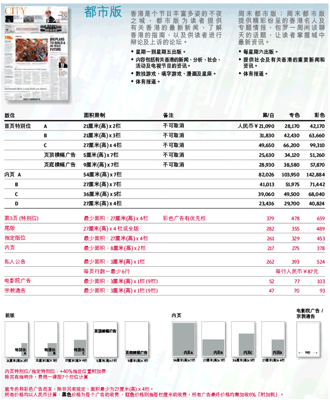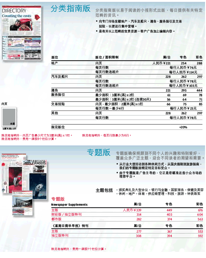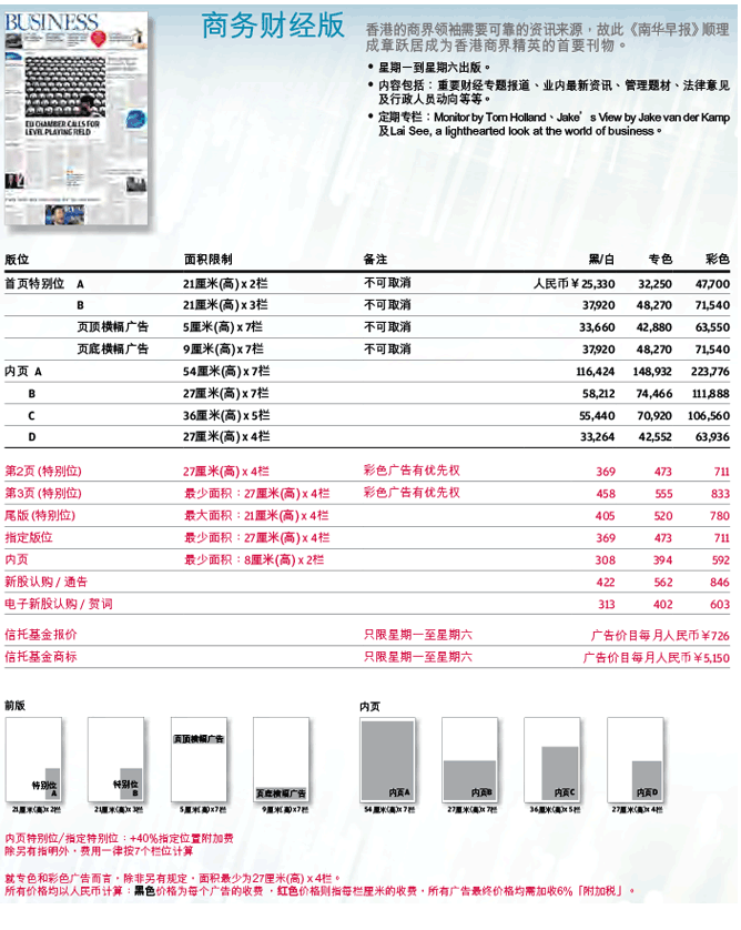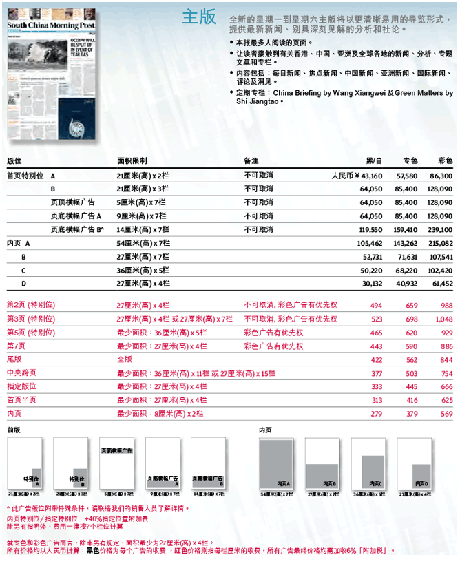 南華早報(bào)2017年廣告刊例價(jià)格