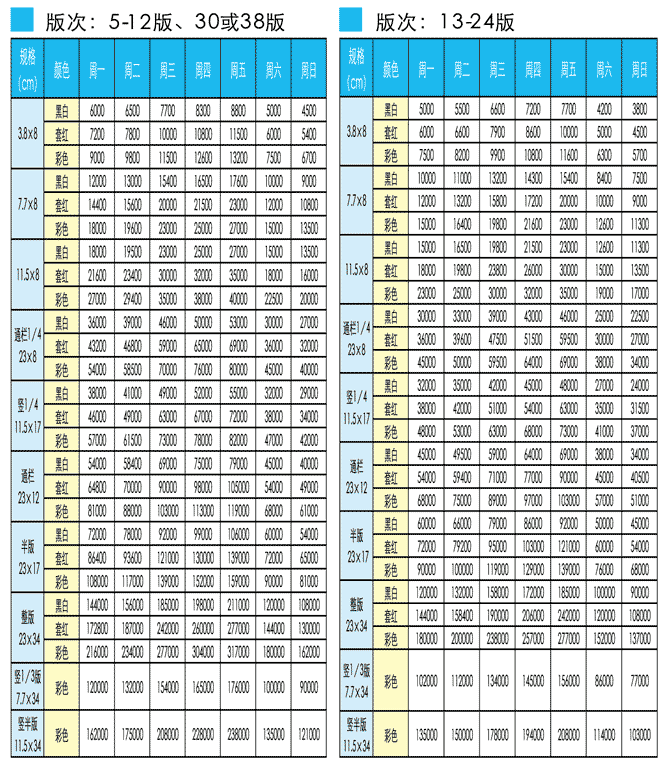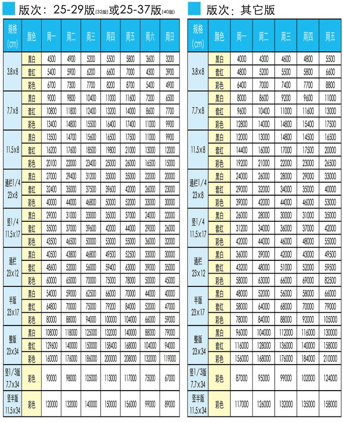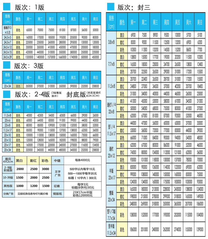 武漢晚報2017年廣告刊例價格