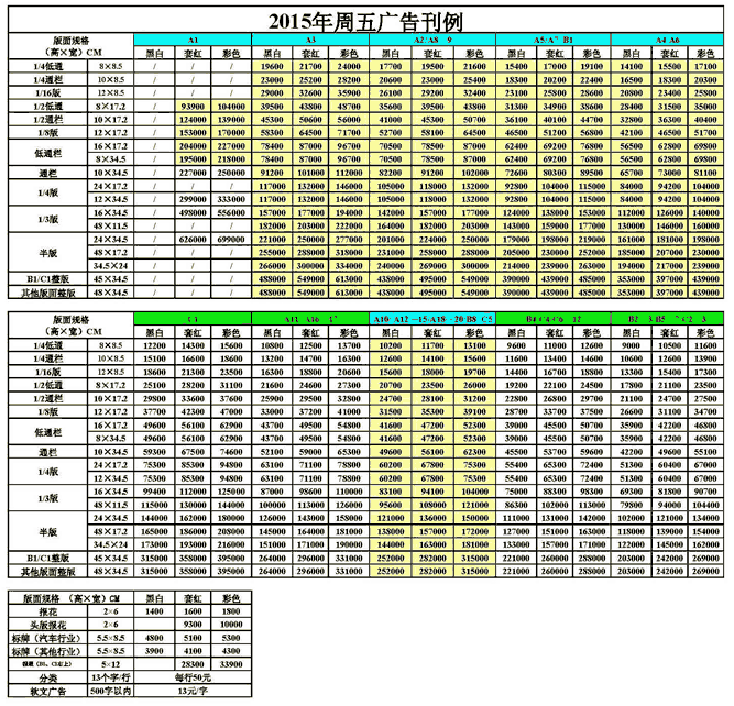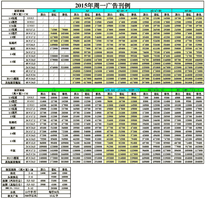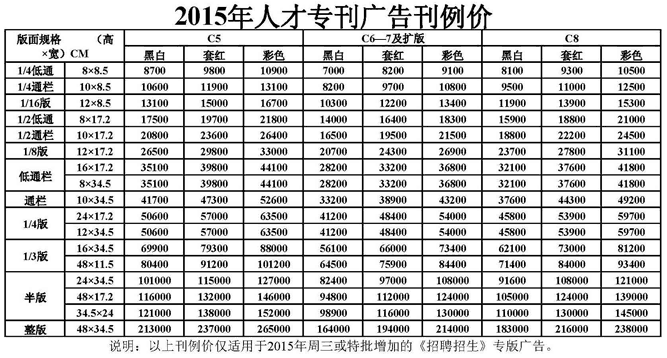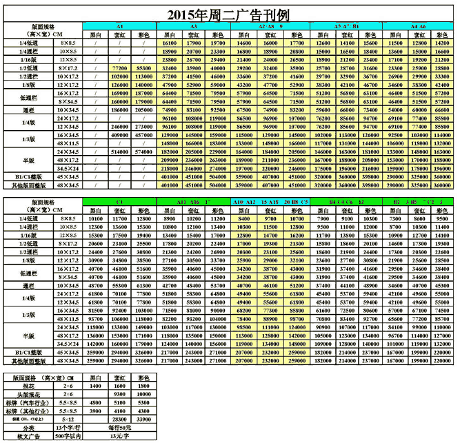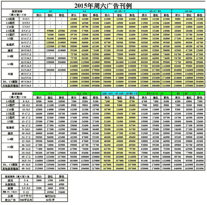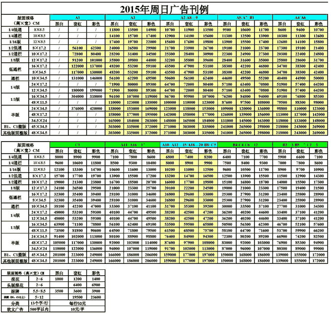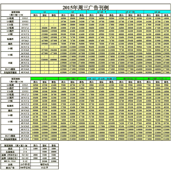 瀟湘晨報2017年廣告刊例價格