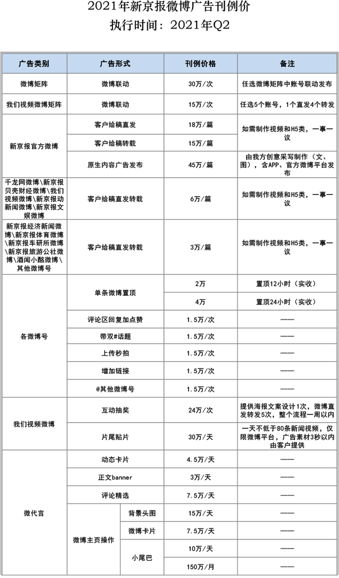 新京報微博廣告報價