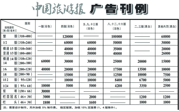 中國旅游報2021年廣告刊例價格