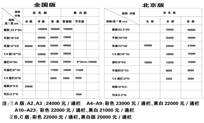 中國電視報2021年廣告刊例價格