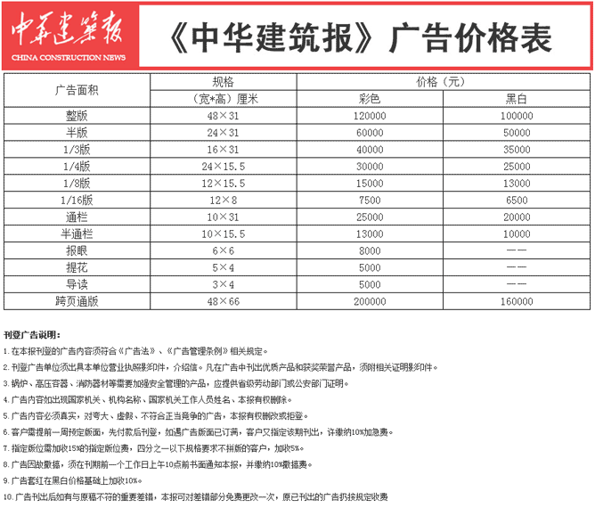 中華建筑報(bào)2021年廣告刊例價(jià)格